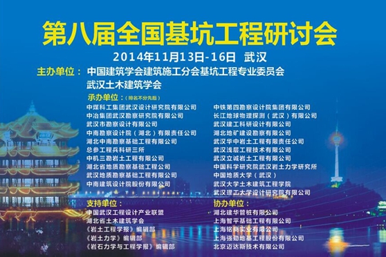 2014年11月14日,第八屆全國基坑工程研討會在武漢市洪山賓館隆重召開。此研討會每兩年舉辦一次,是國內(nèi)基坑工程技術(shù)專業(yè)的頂級交流活動。本次大會共有來自全國各地的行業(yè)精英700余人參加,并邀請到龔曉南、劉祖德、范士凱、顧金才、黃強(qiáng)、唐雨耕、宋二祥、鄭剛、王衛(wèi)東、徐武建、彭浩、張曠成等工程院院士、全國頂尖大師、知名學(xué)者及重要領(lǐng)導(dǎo)作為與會嘉賓,大家齊聚一堂,共襄盛會。