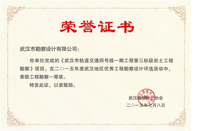 武漢市軌道交通四號(hào)線一期工程第三標(biāo)段巖土工程勘察