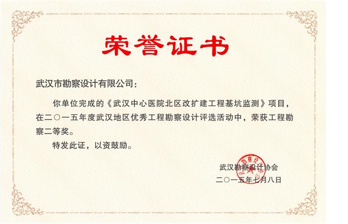 熱烈祝賀我公司在2015年度武漢市優(yōu)秀工程勘察設(shè)計(jì)獎(jiǎng)評(píng)選中,榮獲市優(yōu)秀工程勘察設(shè)計(jì)獎(jiǎng)項(xiàng)八項(xiàng)。