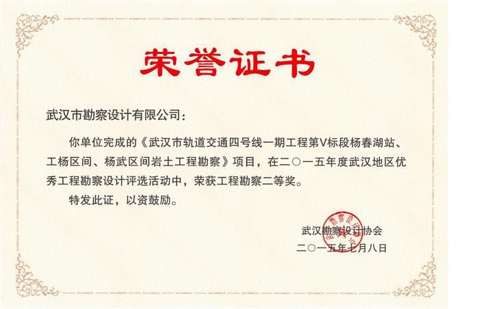 武漢市軌道交通四號(hào)線一期工程第V標(biāo)段楊春湖站、工楊區(qū)間、楊武區(qū)間巖土工程勘察