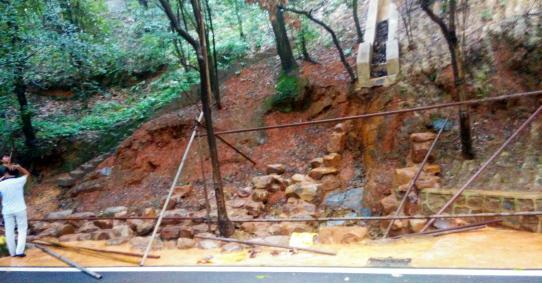 7月5日,受連日暴雨影響,國(guó)家人防防空防災(zāi)教育訓(xùn)練基地(武漢)公路邊坡出現(xiàn)多處垮塌,垮塌巖土體散落于邊坡坡腳排水溝及基地公路路面附近,影響了道路通行。公司應(yīng)急搶險(xiǎn)團(tuán)隊(duì)火速趕到現(xiàn)場(chǎng)清除滑塌堆積體,及時(shí)開(kāi)展填方邊坡與公路之間的土體防滲工作,重新架構(gòu)起已沖毀的管道,用毛石、砼等填筑洗空區(qū),采用削方減緩已垮塌邊坡坡度,最大程度還原了邊坡原貌,并不斷加大巡查力度,做好了基地公路沿線類(lèi)似地質(zhì)災(zāi)害潛在隱患的預(yù)判和預(yù)處置。