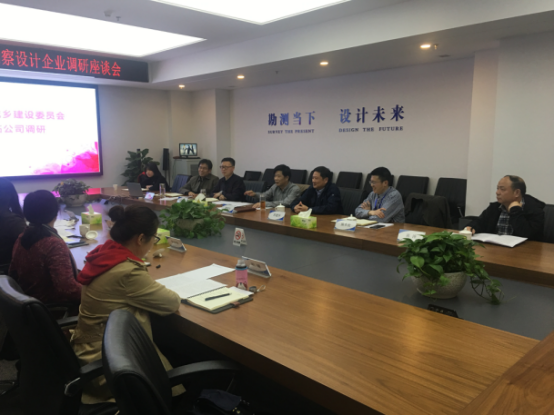 為全面了解武漢市勘察設(shè)計企業(yè)經(jīng)營狀況,切實掌握企業(yè)運行情況,更好的為企業(yè)發(fā)展服務(wù),3月16日下午,市城建委林琨副主任、設(shè)計處徐海清處長、設(shè)計之都發(fā)展中心(審查辦)胡華瑩副主任、海管辦劉婕科長、節(jié)能處明珊科長赴我司進行了考察調(diào)研。市測繪院肖建華院長,公司廖建生董事長、施木俊總經(jīng)理及其他高管層、職能部門負責(zé)人參加了座談。