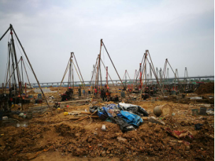 佳兆業(yè)·悅府項(xiàng)目一期C地塊位于武漢市東西湖區(qū)吳新干線與三店大道交叉口,項(xiàng)目規(guī)劃30余棟建筑物,一期C地塊8棟建筑物的詳勘報(bào)告顯示,擬建場地內(nèi)白云巖中發(fā)育有巖溶,受業(yè)主委托,我公司于2018年4月10日進(jìn)場開始該項(xiàng)目施工勘察(超前鉆)的外業(yè)工作,先后共投入鉆機(jī)35臺,按設(shè)計(jì)要求完成一期C地塊共計(jì)8棟住宅樓572根樁的一樁一孔施工勘察(超前鉆)任務(wù)。