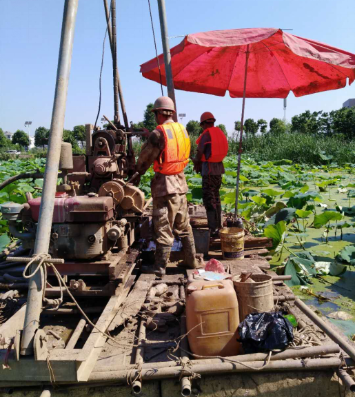 本工程任務(wù)重,勘探工作量大,開工前項(xiàng)目負(fù)責(zé)人對現(xiàn)場鉆探人員進(jìn)行了技術(shù)交底、環(huán)安教育及思想工作。勘察期間正值持續(xù)高溫天氣,給外業(yè)工作帶來了巨大挑戰(zhàn),但工作過程中項(xiàng)目成員及鉆探人員吃苦耐勞、堅(jiān)守崗位,加班加點(diǎn),保證外業(yè)進(jìn)度的同時(shí),也不懈怠安全生產(chǎn)及質(zhì)量把控,使得勘察工作有條不紊的進(jìn)行。