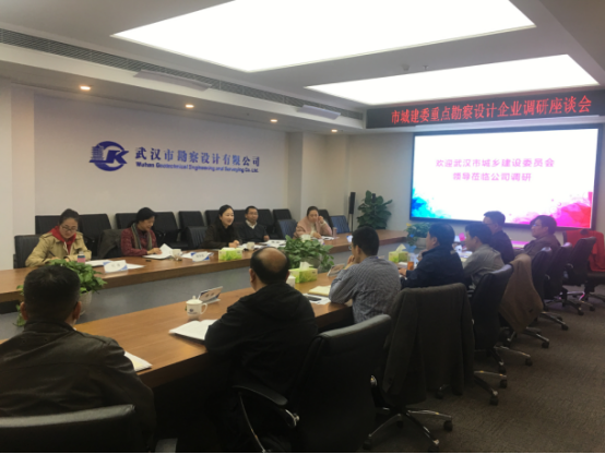 為全面了解武漢市勘察設計企業(yè)經營狀況,切實掌握企業(yè)運行情況,更好的為企業(yè)發(fā)展服務,3月16日下午,市城建委林琨副主任、設計處徐海清處長、設計之都發(fā)展中心(審查辦)胡華瑩副主任、海管辦劉婕科長、節(jié)能處明珊科長赴我司進行了考察調研。市測繪院肖建華...